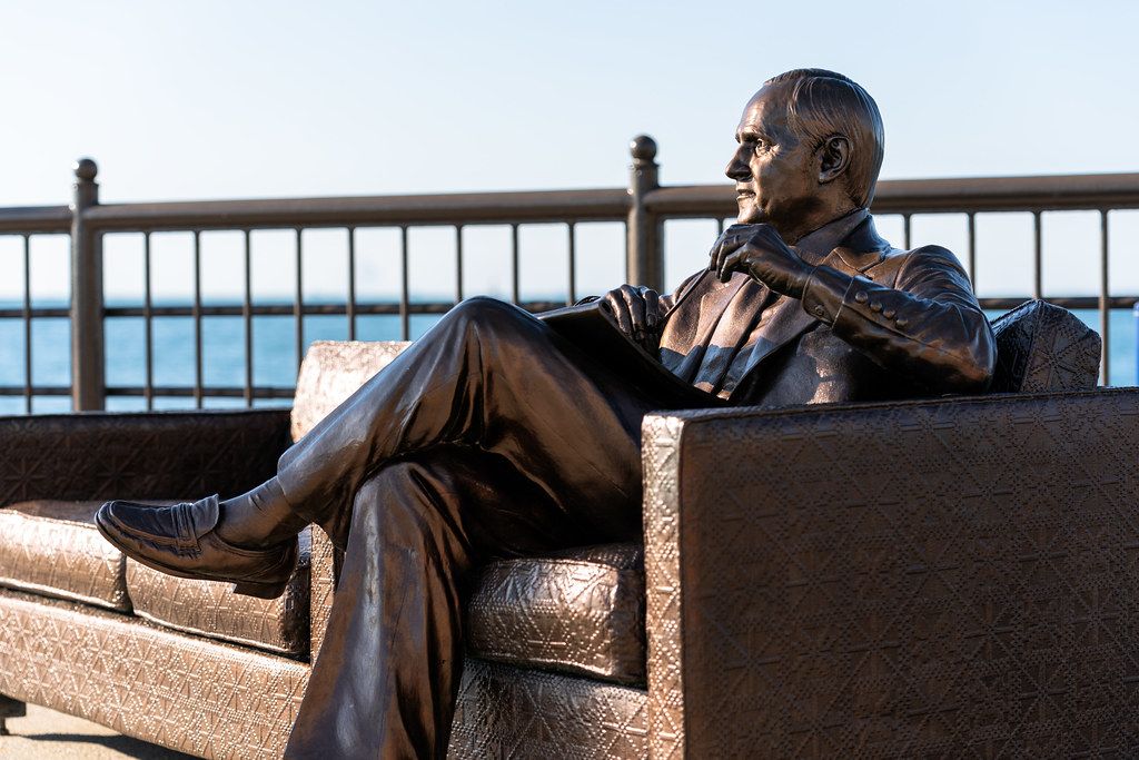 Beyond awards, Bob Newhart holds a unique place in popular culture, symbolized by a life-size statue located at the far end of Chicago’s Navy Pier. The sculpture depicts Newhart sitting on a sofa couch as his character Dr. Bob Hartley, holding a pen and pad, seemingly inviting passersby to sit beside him. Originally located at 430 N. Michigan Avenue, the address of the building that housed Dr. Hartley’s office in the sitcom, the statue serves as a tangible tribute to his connection to the city and his most famous television role.