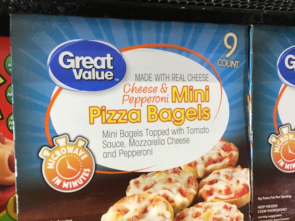 Walmart, Great Value, Mini Pizza Bagels, | Walmart, Great Va… | Flickr, Photo by staticflickr.com, is licensed under CC BY 2.0