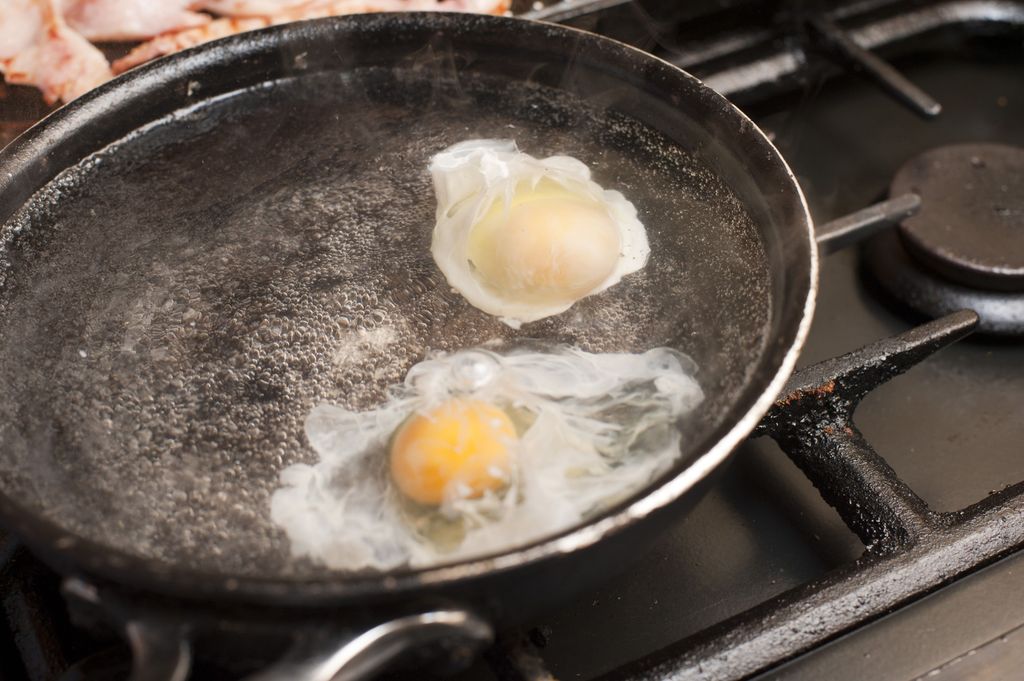 Two eggs being poached in boiling water – Free Stock Image, Photo by freefoodphotos.com, is licensed under CC BY-SA 4.0